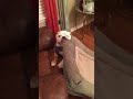 Gerald the bulldog struggles to get his bed into his chair. camera iphone 8 plus apk |